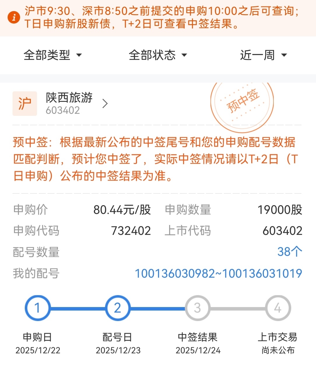 $陕西旅游(SH603402)$ 时隔两年多总算中签了,感谢感谢
