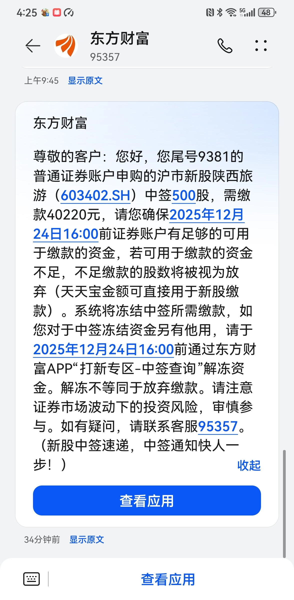 $陕西旅游(SH603402)$ 中了500股