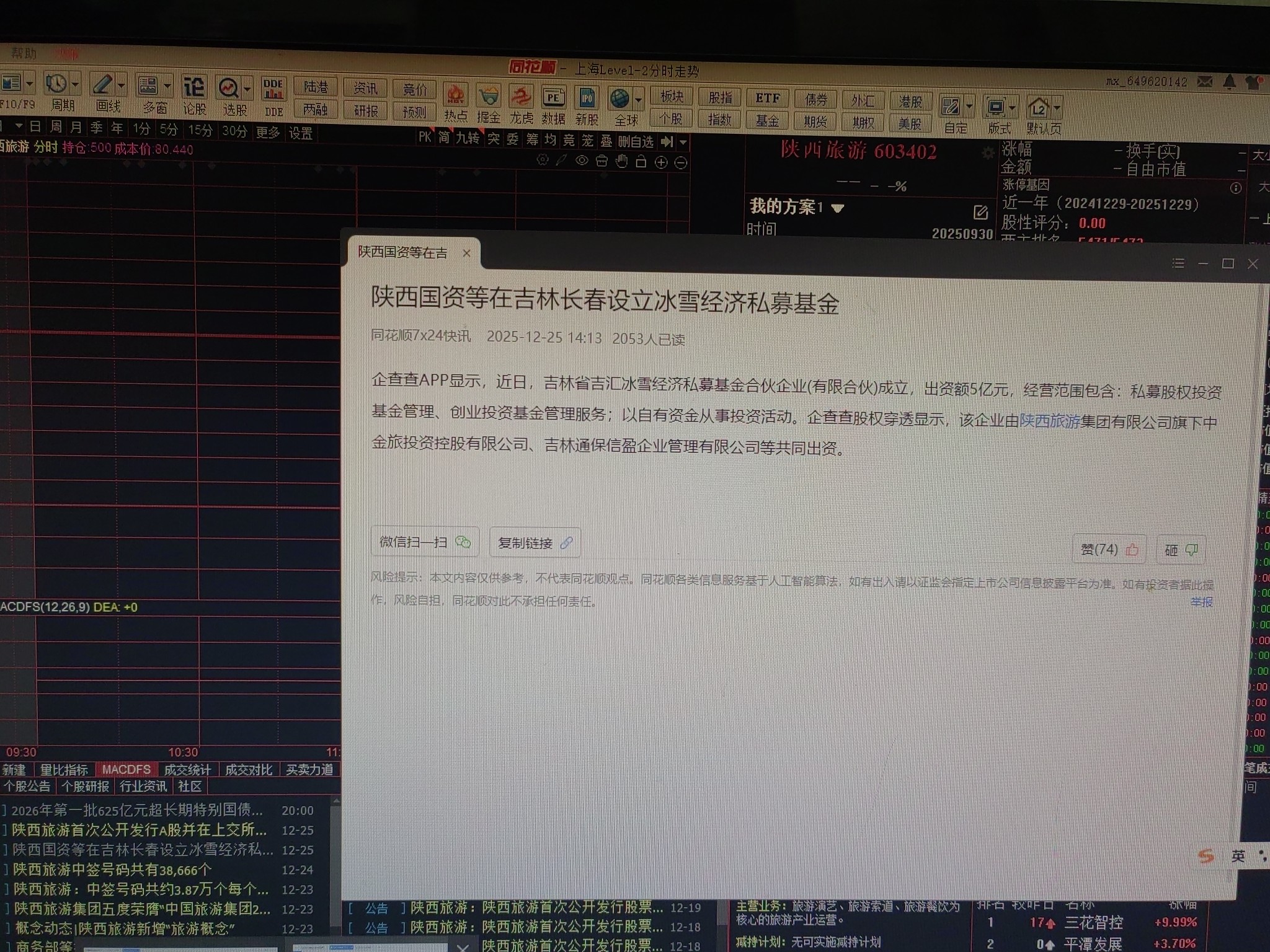 股价要起飞,陕西旅游在吉林长春设立冰雪经济私募基金