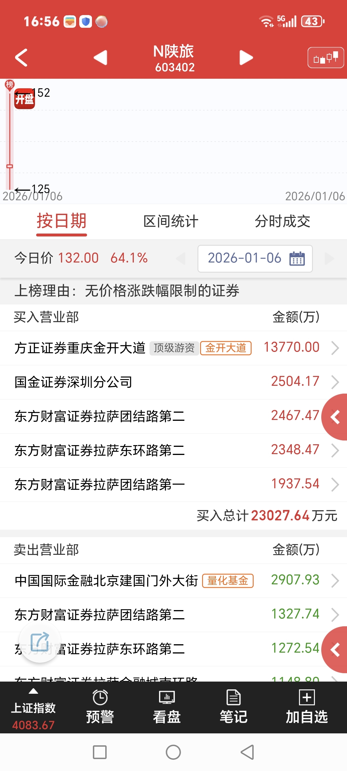 $N陕旅(SH603402)$ 龙虎榜,牛逼柚子扫货1.4亿
