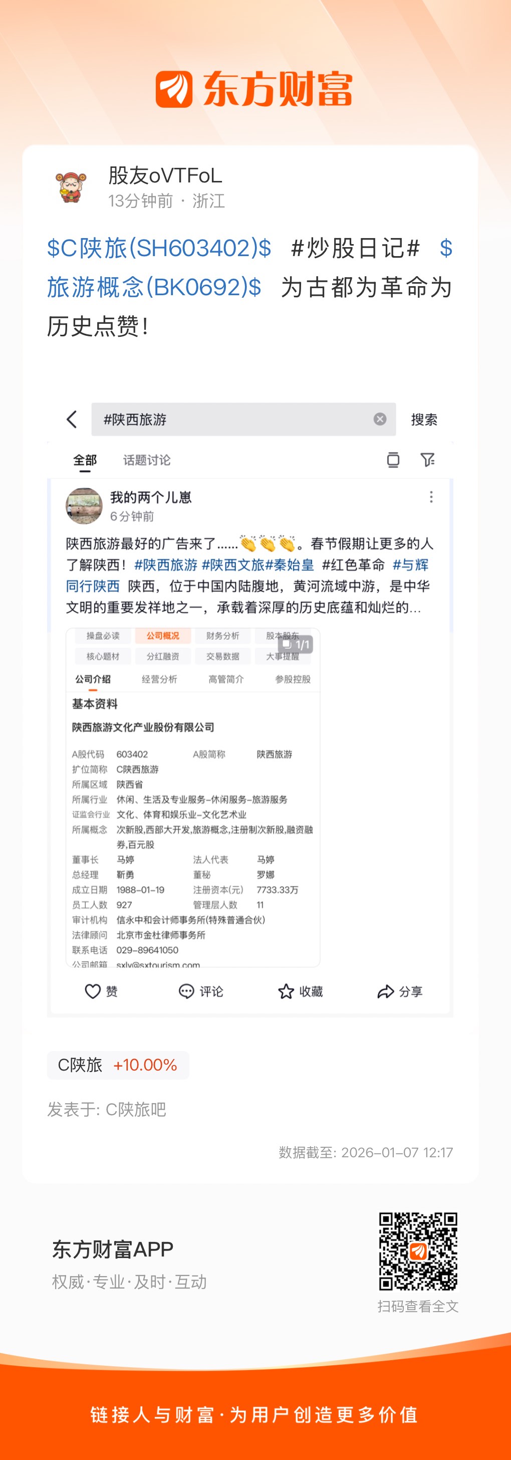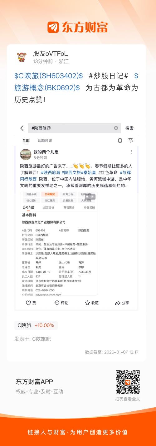$C陕旅(SH603402)$  #炒股日记#  $旅游概念(BK0692)$  为古都为革命为历史点赞!