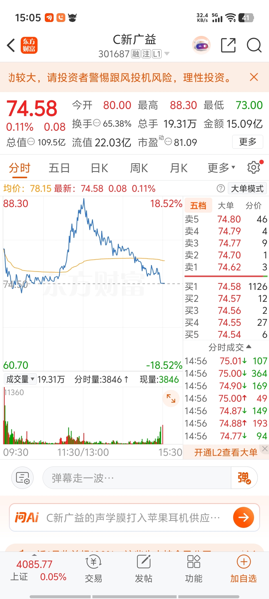 温馨提示: 1.根据《证券法》规定,禁止编造、传播虚假信息或者误导性信息,扰乱证券市场;2.用户在本社区发表的所有资料、言论等仅代表个人观点,与本网站立场无关,不对您构成任何投资建议。用户应基于自己的独立判断,自行决定证券投资并承担相应风险。《东方财富社区管理规定》