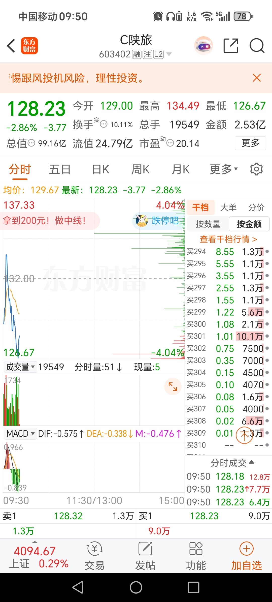 $C陕旅(SH603402)$ 那个挂0.01的过分了哈