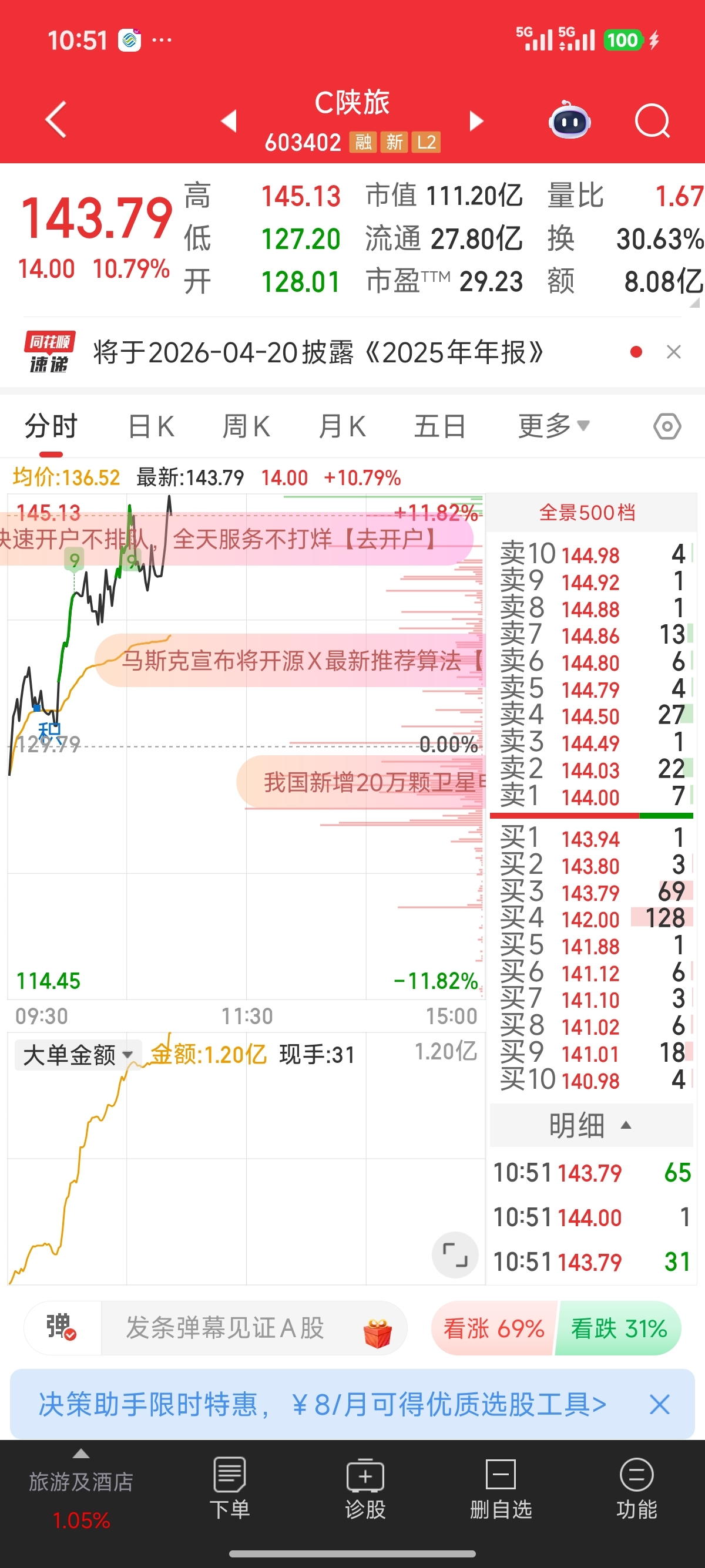 $C陕旅(SH603402)$ 缩量赶紧跑