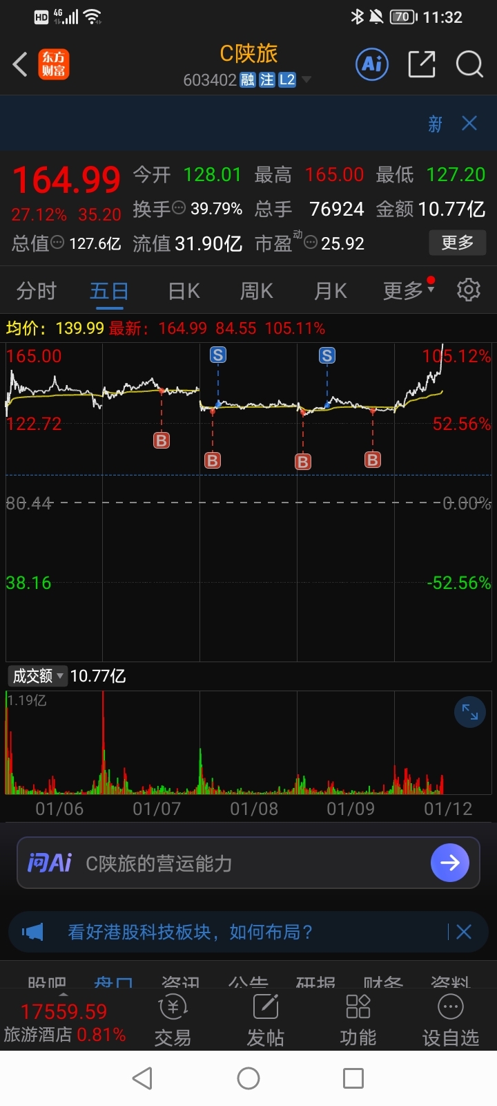 $C陕旅(SH603402)$ 没辜负我的加仓