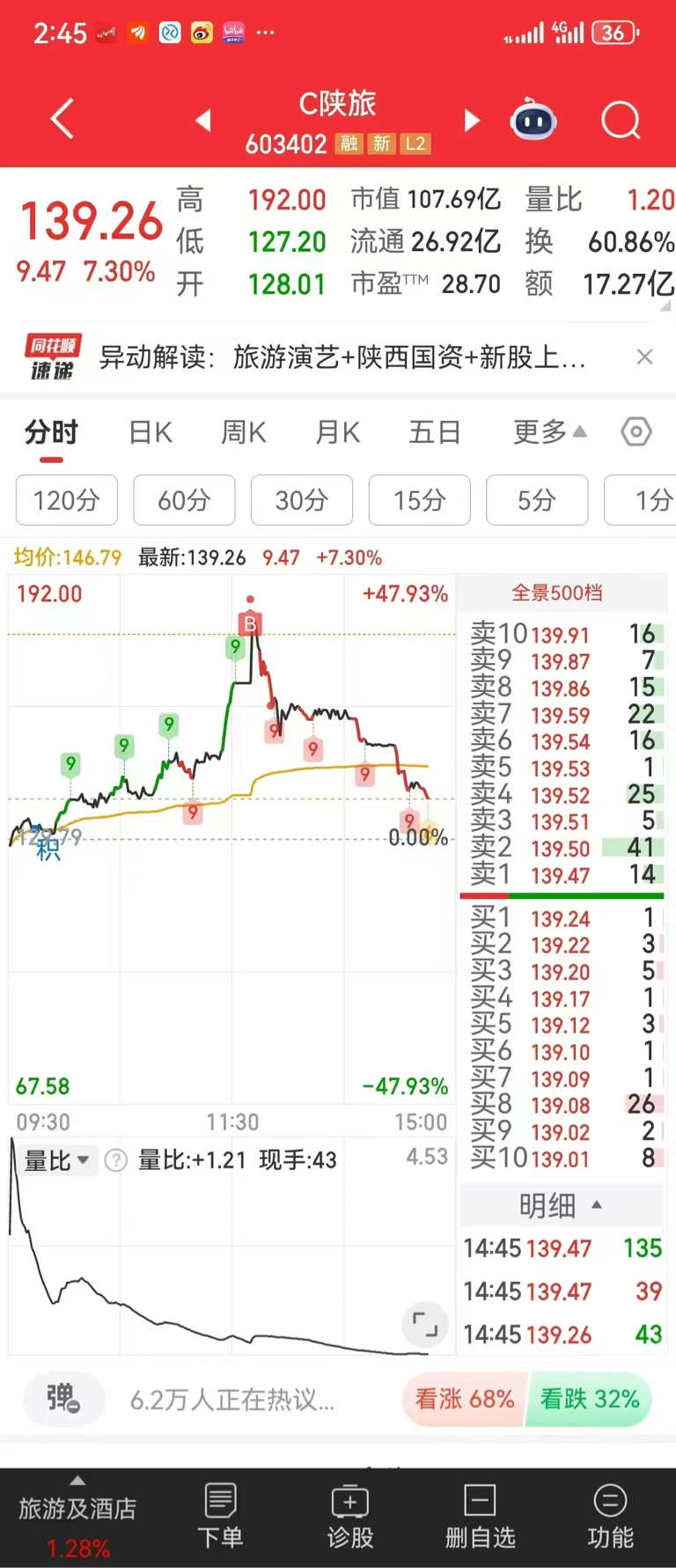 $C陕旅(SH603402)$ 好爽啊