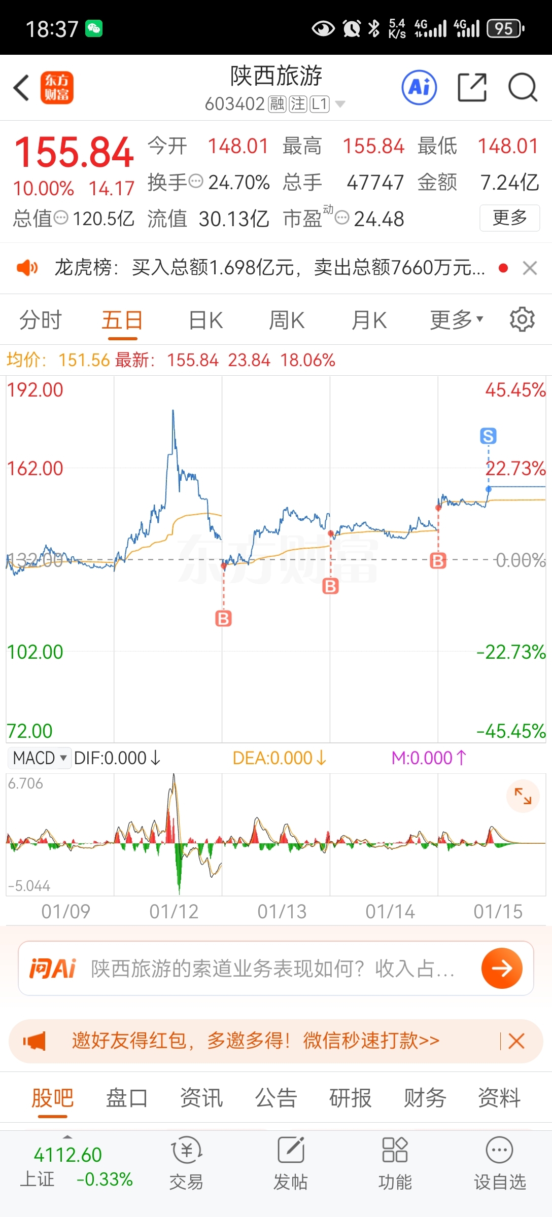$陕西旅游(SH603402)$ 第一次做旅游股和次新股,真心虚心请教一下有经验的朋友,像陕西旅游这种次新百元小盘股,适合长期拿嘛?还是做个短线即可?分三批买的,今天T了一下,成本不算太高。