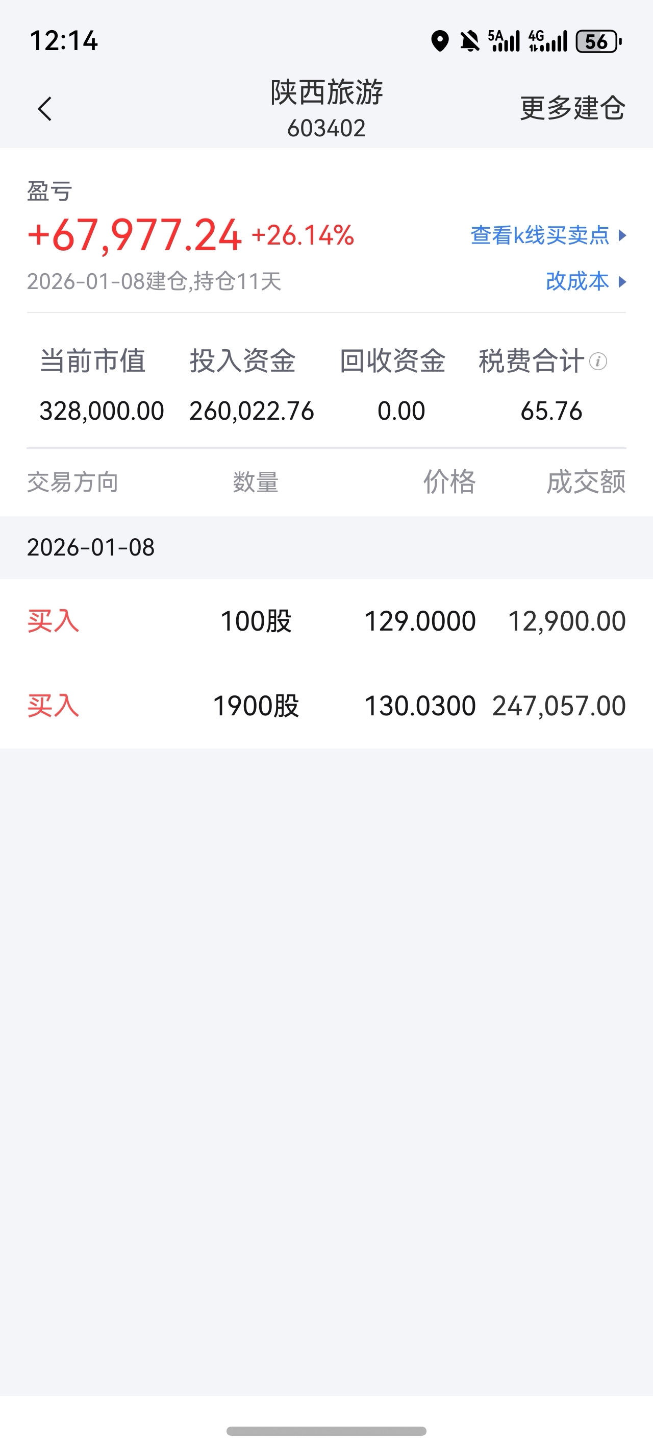 $陕西旅游(SH603402)$ 问问可有哪位上市前五天买的,还没卖的