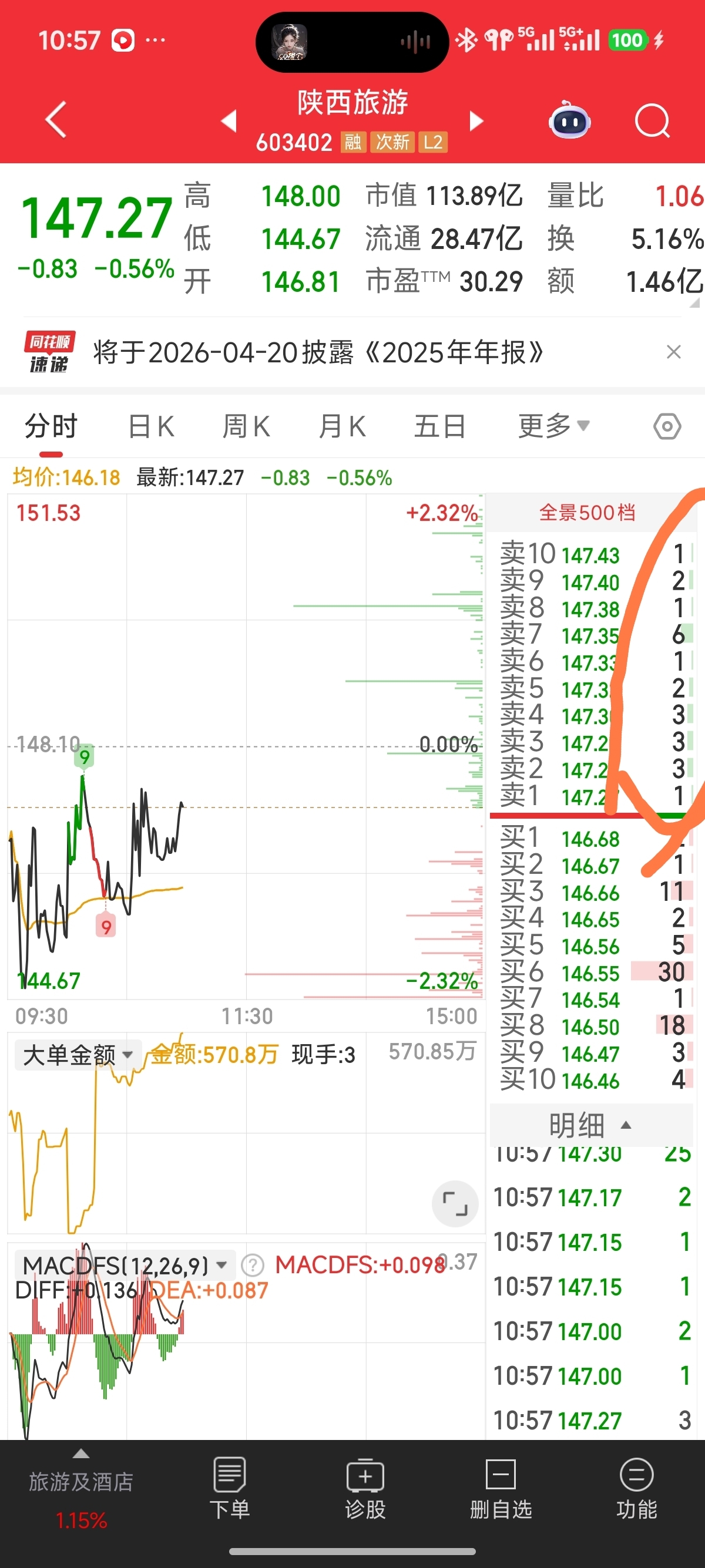 $陕西旅游(SH603402)$ 量化啊140块的股票每一分钱都有挂单。你想买,一手一手把货全卖给你