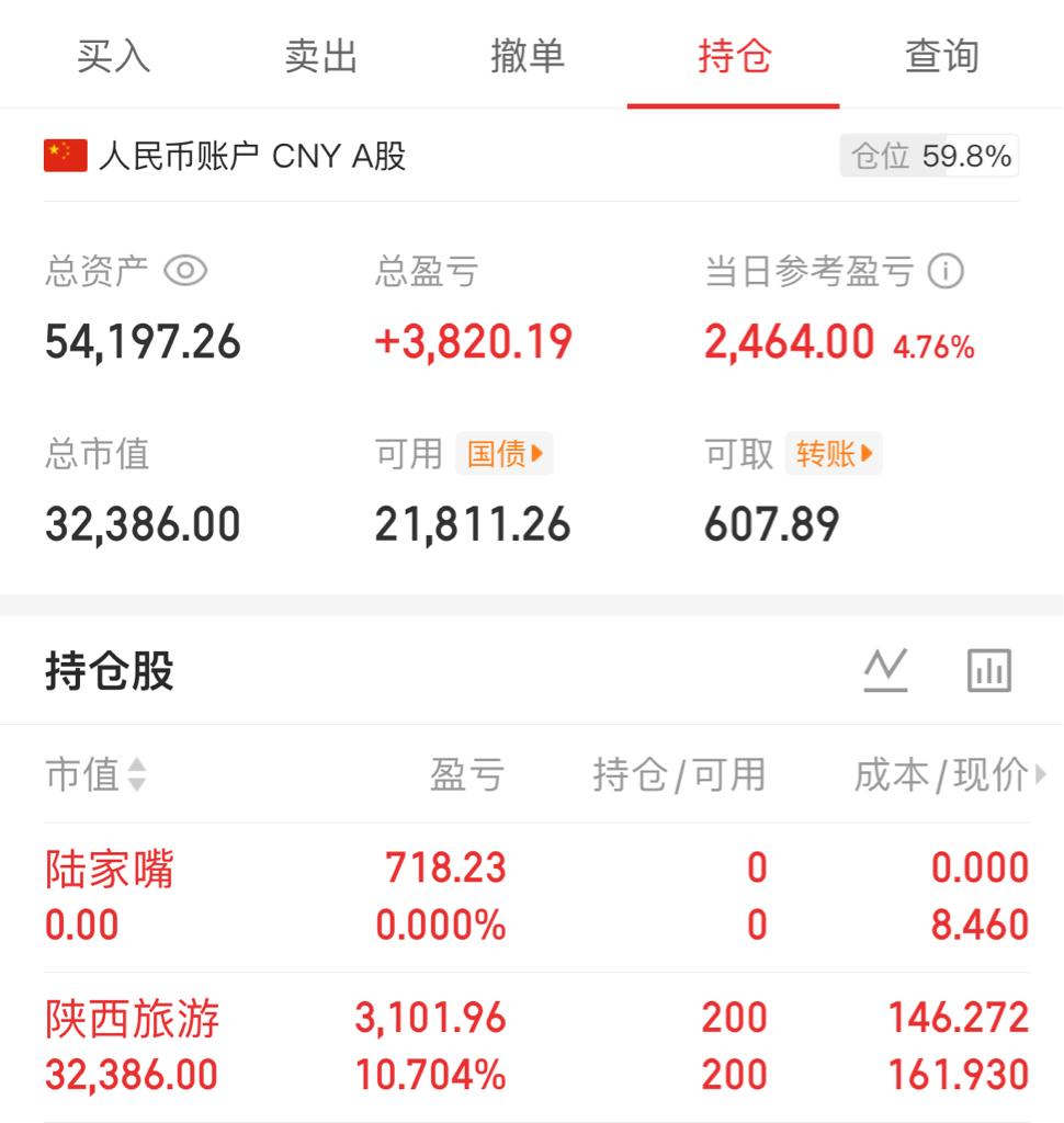 $陕西旅游(SH603402)$ 卖了陆家嘴,下午再加一百股陕西旅游