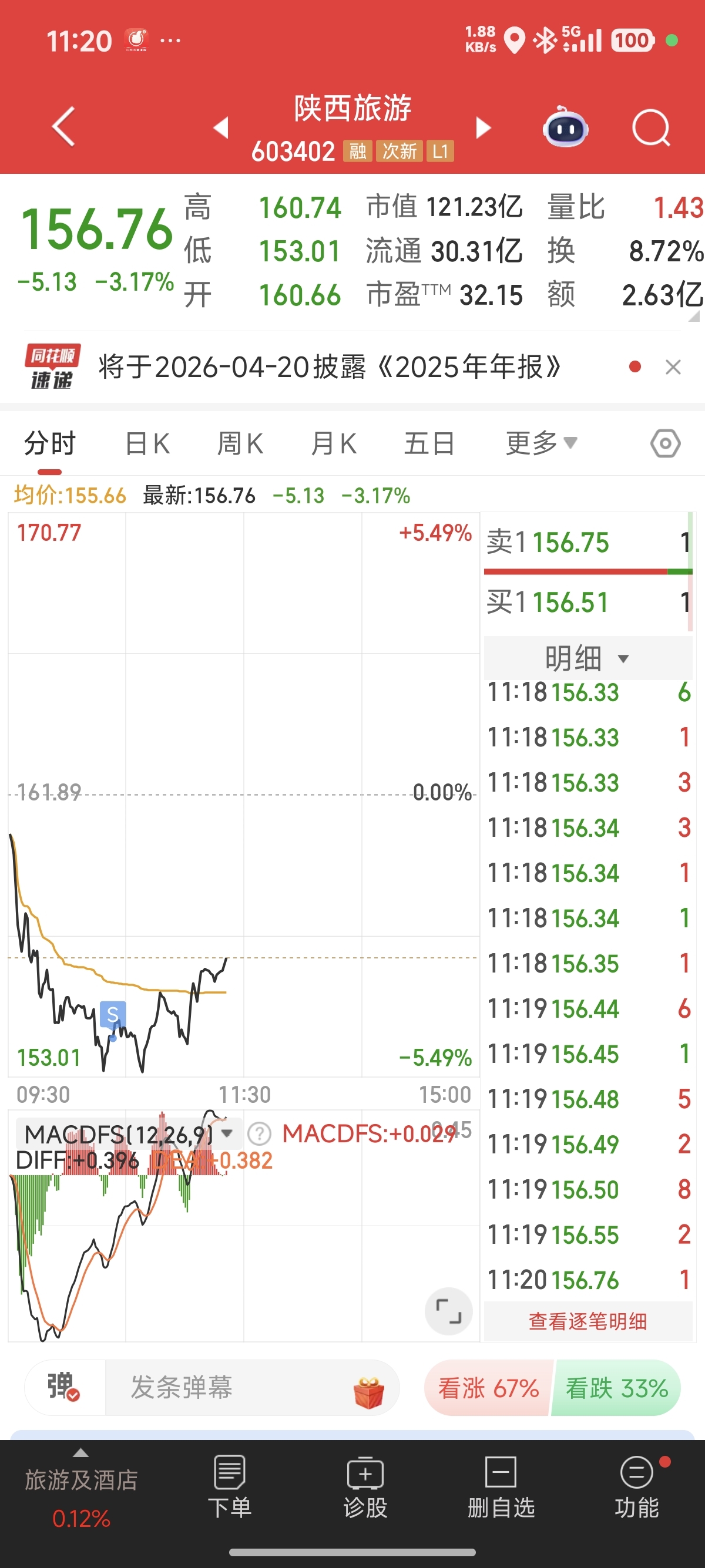 $陕西旅游(SH603402)$ 被吓得清仓了