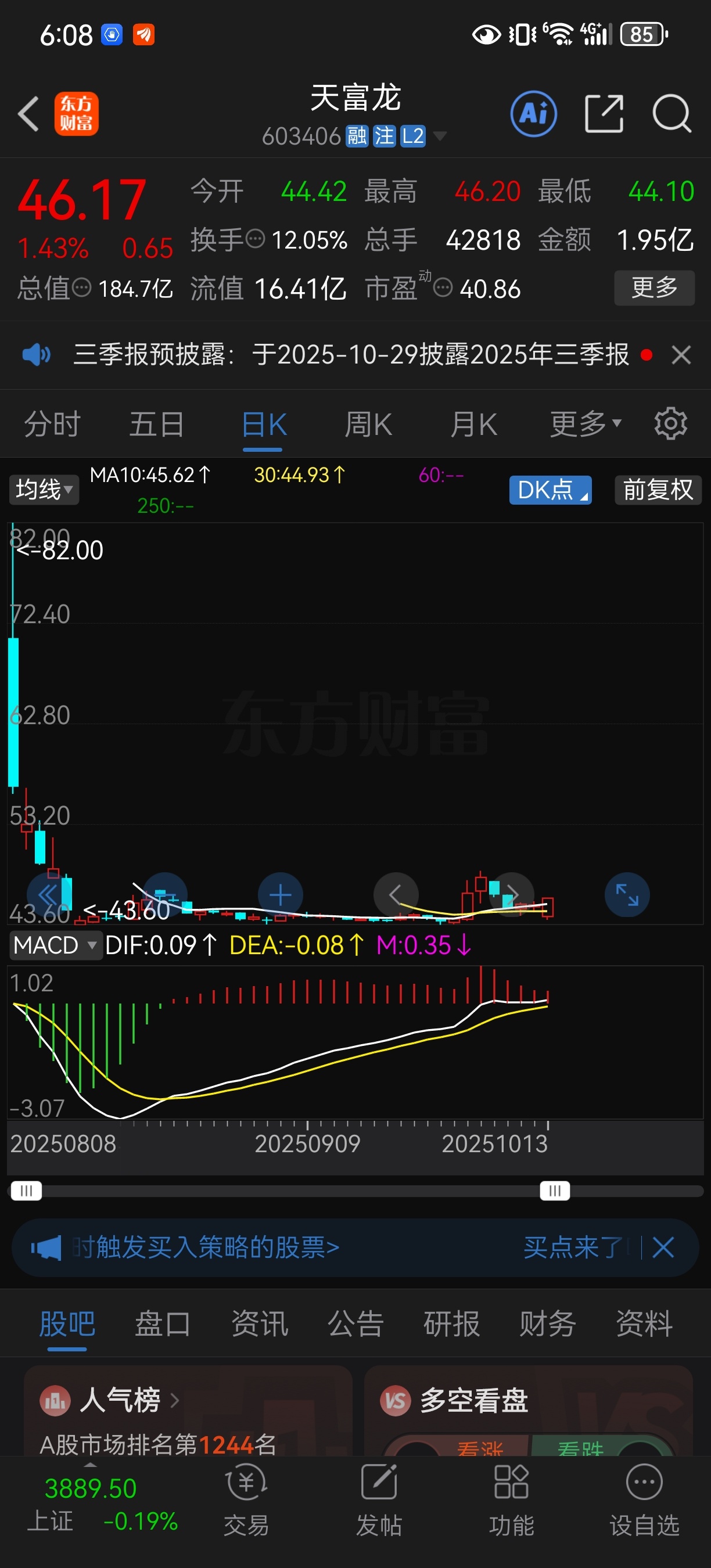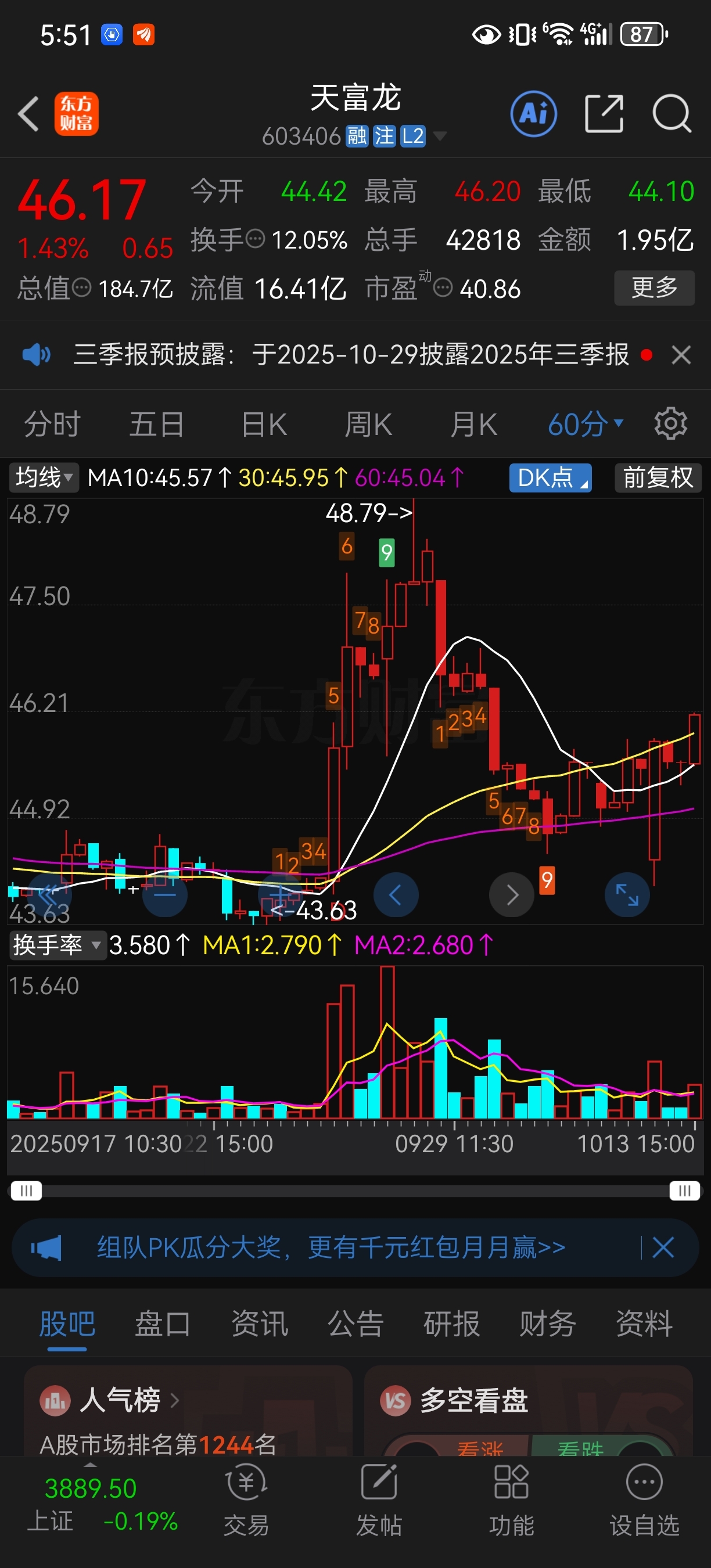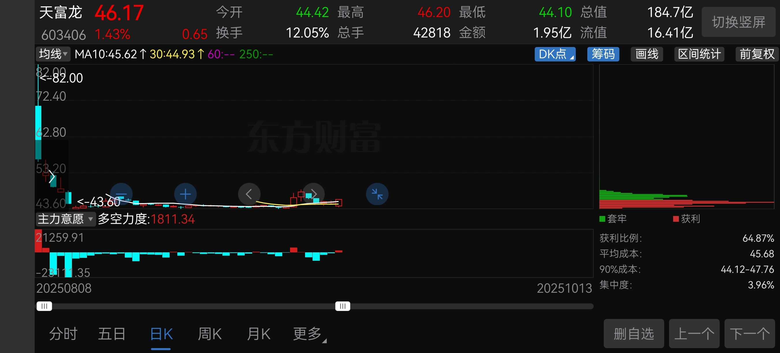 日线级别的MACD已经连续二十九个交易日在红柱区域运行,43.6元的最低价被全体股东认可,现在股价又重新站上了十日和三十日均线,多头排行开始了!