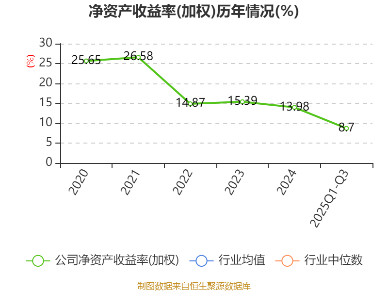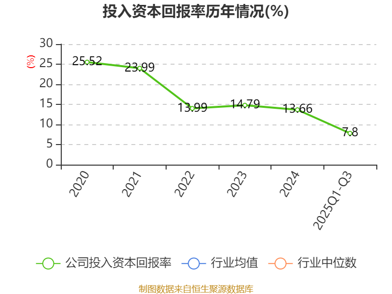 盈利能力方面, 2025年前三季度公司加权平均净资产收益率为8.7%。公司2025年前三季度投入资本回报率为7.8%,较上年同期下降13.3个百分点。