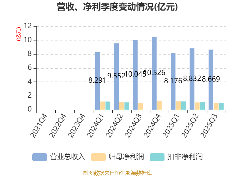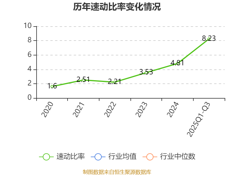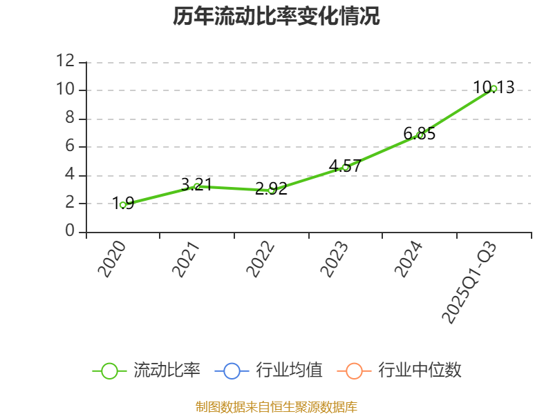 2025年前三季度,公司流动比率为10.13,速动比率为8.23。