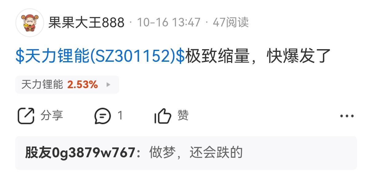 温馨提示: 1.根据《证券法》规定,禁止编造、传播虚假信息或者误导性信息,扰乱证券市场;2.用户在本社区发表的所有资料、言论等仅代表个人观点,与本网站立场无关,不对您构成任何投资建议。用户应基于自己的独立判断,自行决定证券投资并承担相应风险。《东方财富社区管理规定》