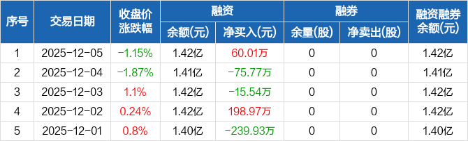 天富龙:融资净买入60.01万元,融资余额1.42亿元(12-05)