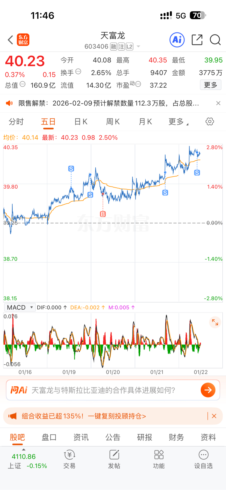 $天富龙(SH603406)$ 先让你飞一会,还有一半没出