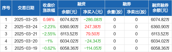 汇通控股:融资净偿还286.08万元,融资余额6074.82万元(03-25)