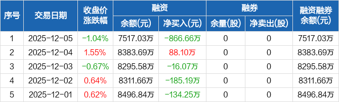 汇通控股:融资净偿还866.66万元,融资余额7517.03万元(12-05)