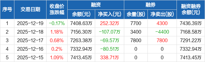 汇通控股:融资净买入252.32万元,融资余额7408.63万元(12-19)