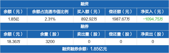 信捷电气:融资净偿还1094.75万元,融资余额1.85亿元(03-28)