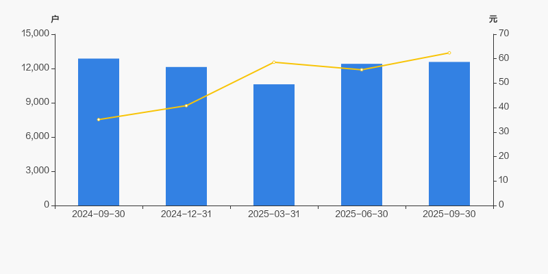 截至2025年9月30日,公司最新总股本为1.57亿股,其中流通股本为1.4亿股。户均持有流通股数量由上期的1.12万股下降至1.11万股,户均流通市值69.95万元。