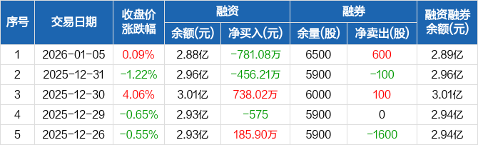 信捷电气:融资净偿还781.08万元,融资余额2.88亿元(01-05)