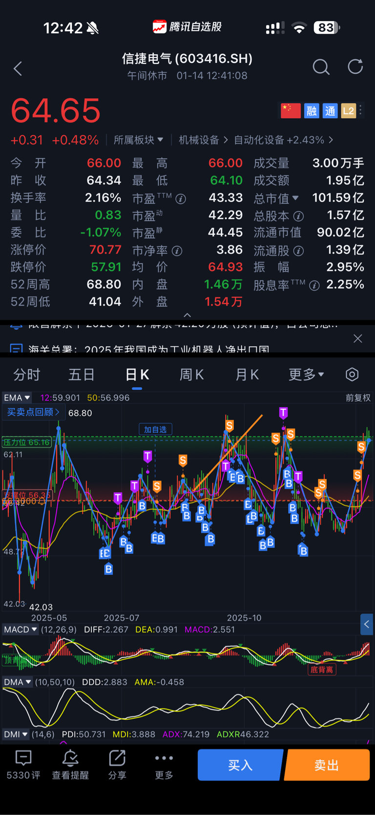 $信捷电气(SH603416)$ 故事重演,回到 57再接。