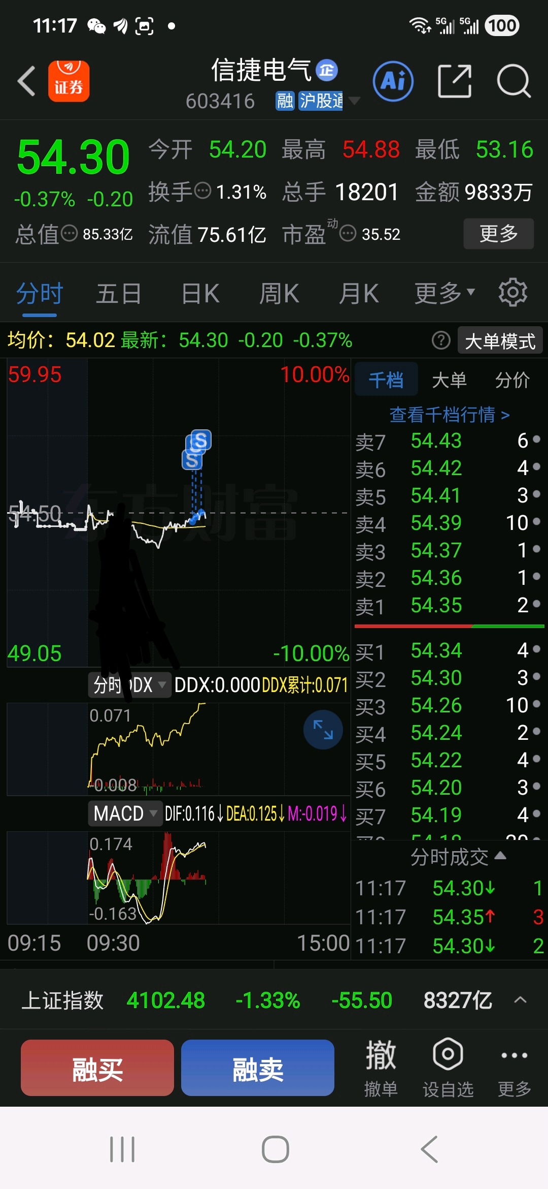 $信捷电气(SH603416)$ 昨天5450先出来,破了53再回来,慢慢来,还有两三天熬一熬