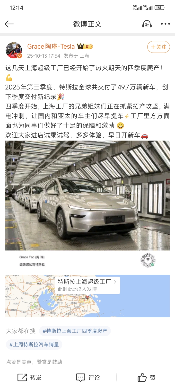 $友升股份(SH603418)$ 特斯拉的热火朝天的满产节奏,不知道何时能够传导到友升的热度上来!这年度业绩预告应该要继续向上修正一下咯
