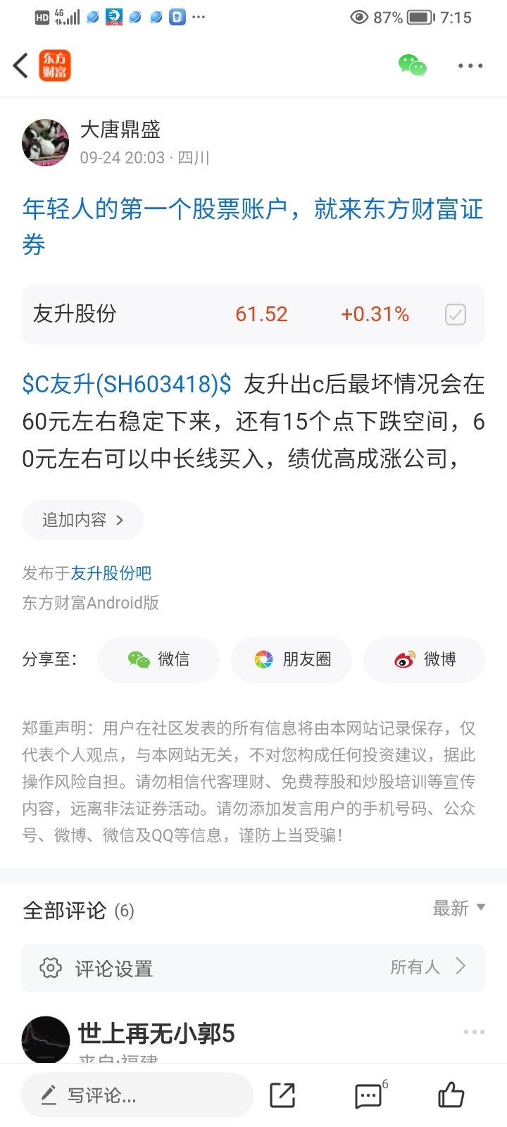 温馨提示: 1.根据《证券法》规定,禁止编造、传播虚假信息或者误导性信息,扰乱证券市场;2.用户在本社区发表的所有资料、言论等仅代表个人观点,与本网站立场无关,不对您构成任何投资建议。用户应基于自己的独立判断,自行决定证券投资并承担相应风险。《东方财富社区管理规定》
