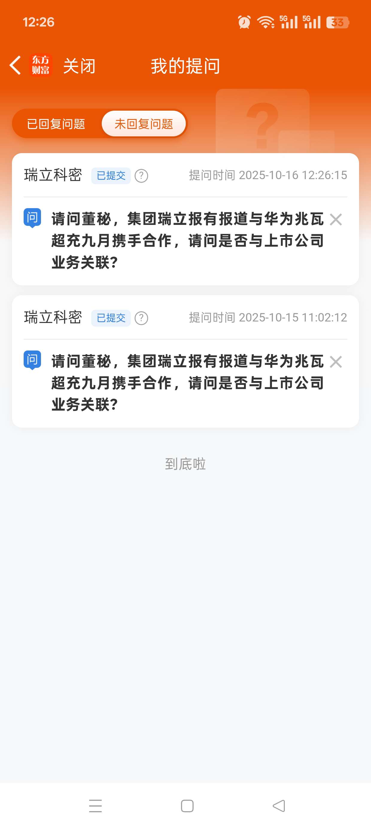 每日一问,请问董秘,集团瑞立报有报道与华为兆瓦超充九月携手合作,请问是否与上市公司业务关联?