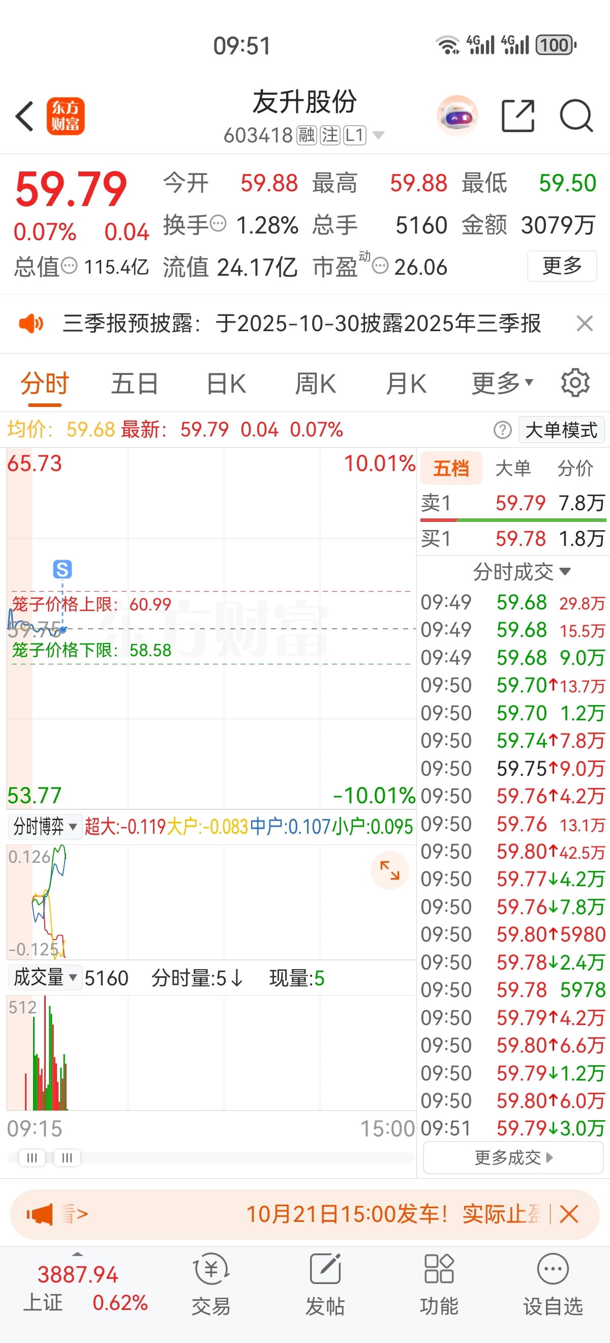 $友升股份(SH603418)$ 兄弟们我走了83的本