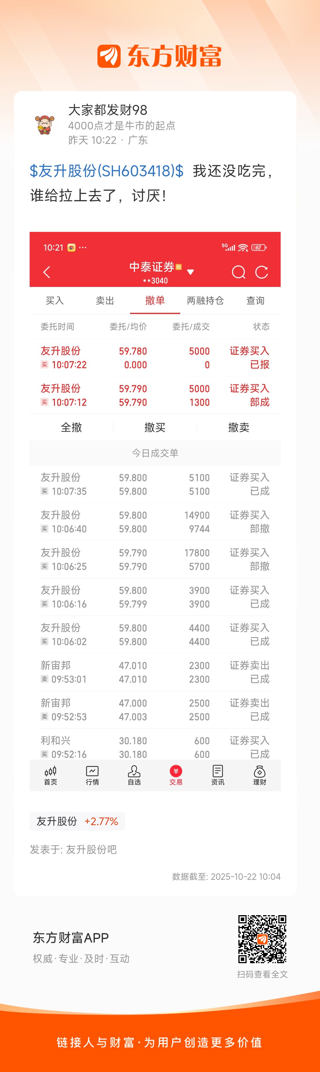 $友升股份(SH603418)$  我还没吃完,谁给拉上去了,讨厌!