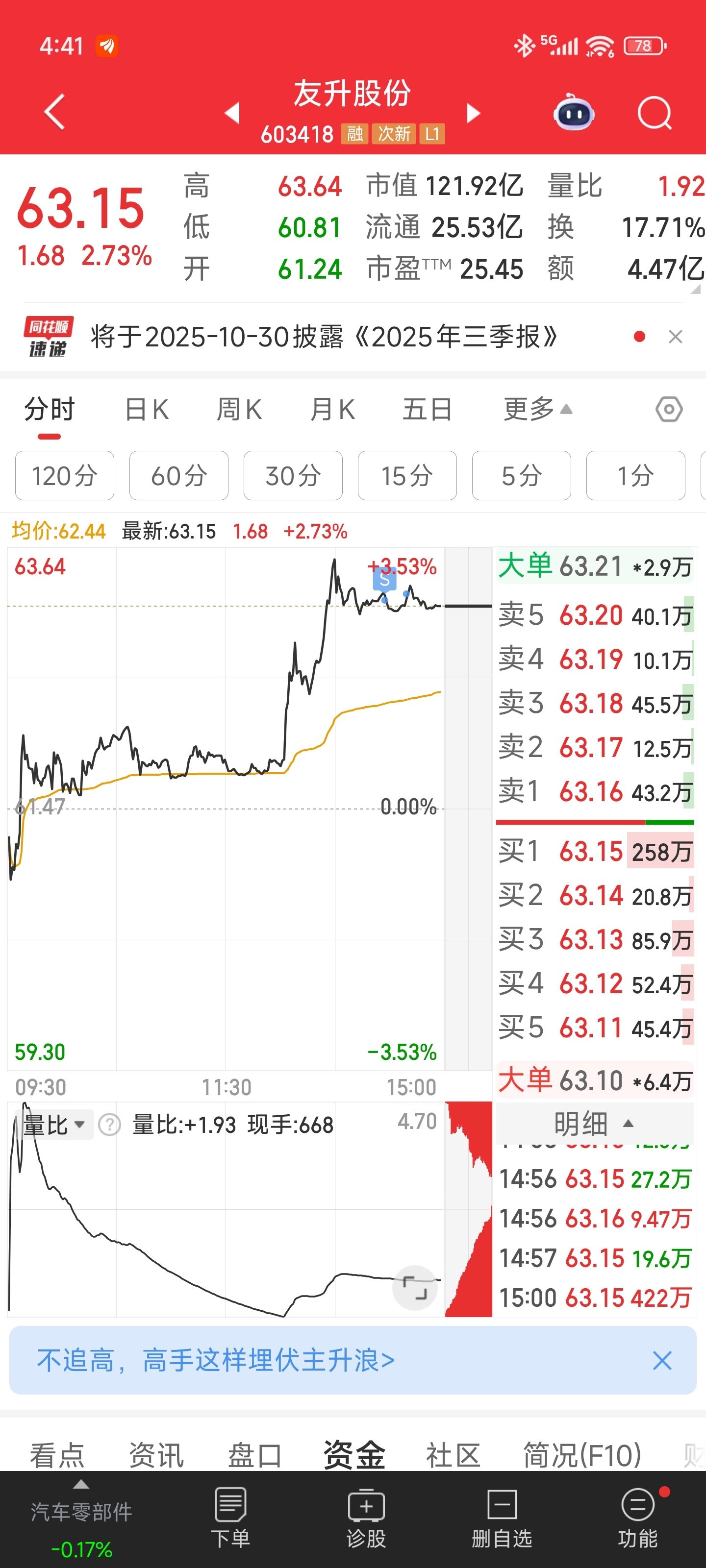 $友升股份(SH603418)$ 今天已经清仓了哈,明天看你们吃肉了