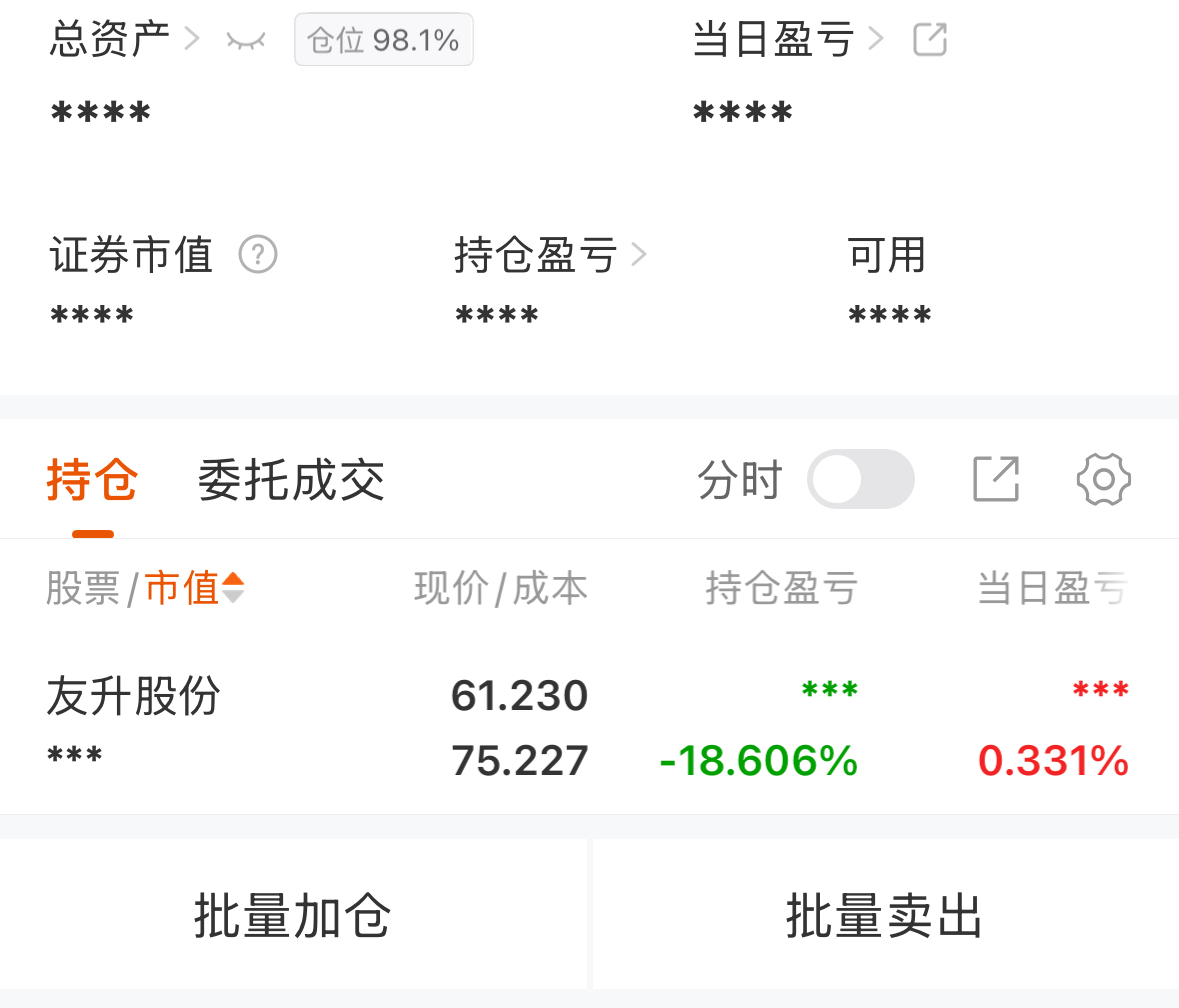 $友升股份(SH603418)$ 还能回本吗?顶不住了!这个牛市就是个笑话!