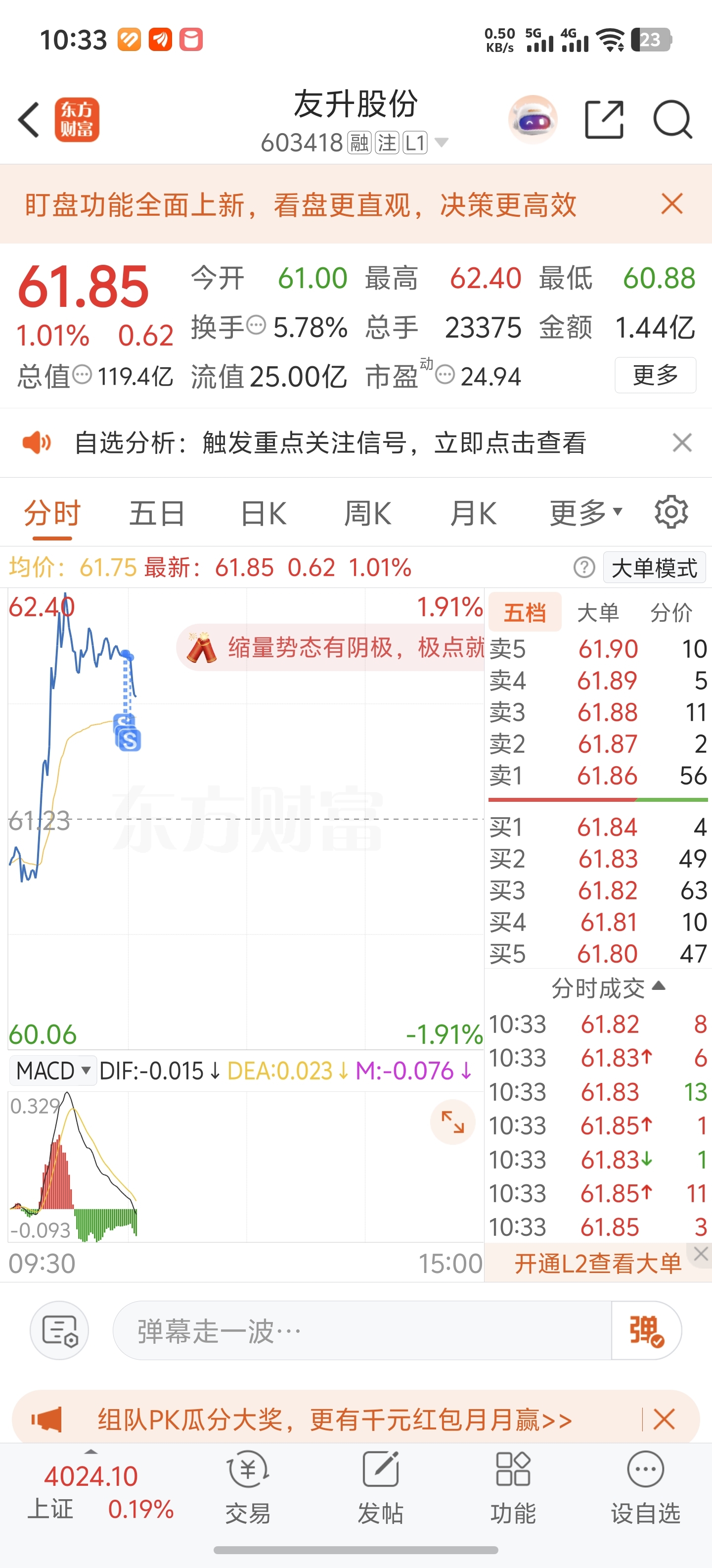走了涨跌幅度没有做T空间估计还得磨,留下的发财