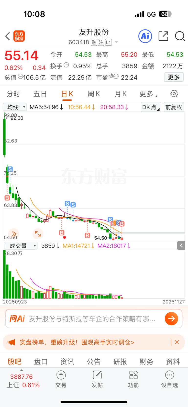 $友升股份(SH603418)$ 73的本,何时回本????告诉我!