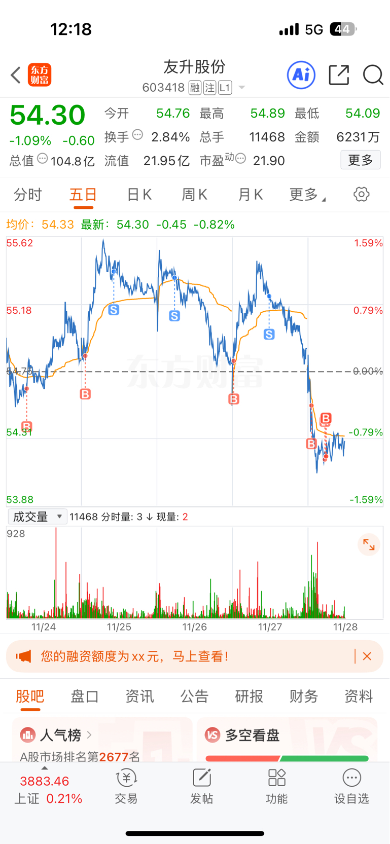 $友升股份(SH603418)$ 连环T才能回本了!根本不用担心T飞!今天又补了仓,成本降到了69!两个涨停就回本了!