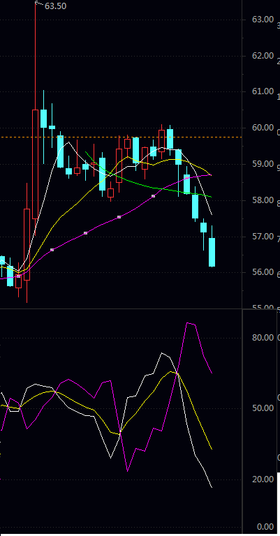 阻力二 57.59 阻力一 56.74 均 价 56.44 支撑一 55.59 支撑二 55.29