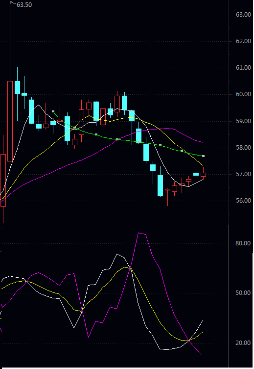 阻力二 57.55 阻力一 57.30 均 价 57.05 支撑一 56.80 支撑二 56.55