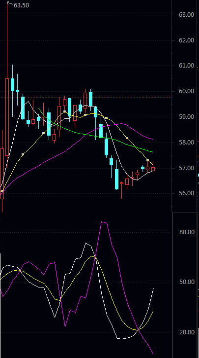 阻力二 57.45 阻力一 57.23 均 价 57.06 支撑一 56.84 支撑二 56.67