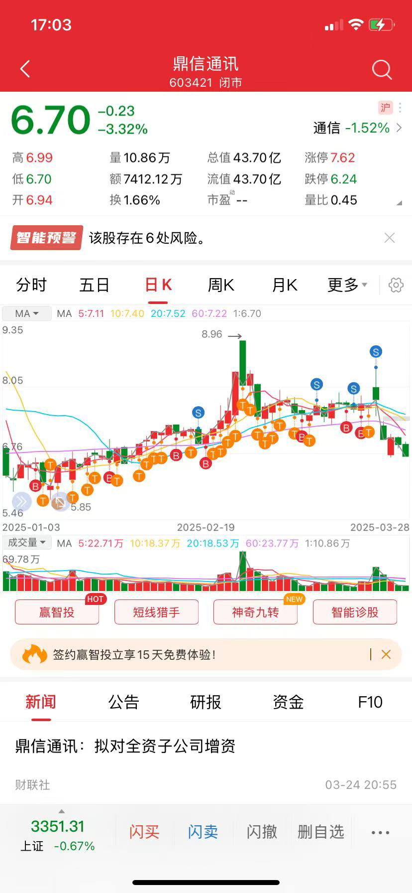 $鼎信通讯(SH603421)$ 哈哈哈哈