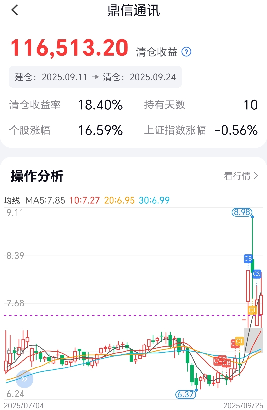 鼎信通讯又小赚九千,爽 //@Diooooo :$鼎信通讯(SH603421)$$罗莱生活(SZ002293)$热烈祝贺鼎信通讯再次涨停,一开始听我说买鼎信通讯的都发财了,罗莱生活这种明显趋势向下的股票,任何一次都小反弹都是卖出良机,赶紧清仓罗莱生活,机不可失,失不再来。另:昨天买的鼎信今天又涨停了。