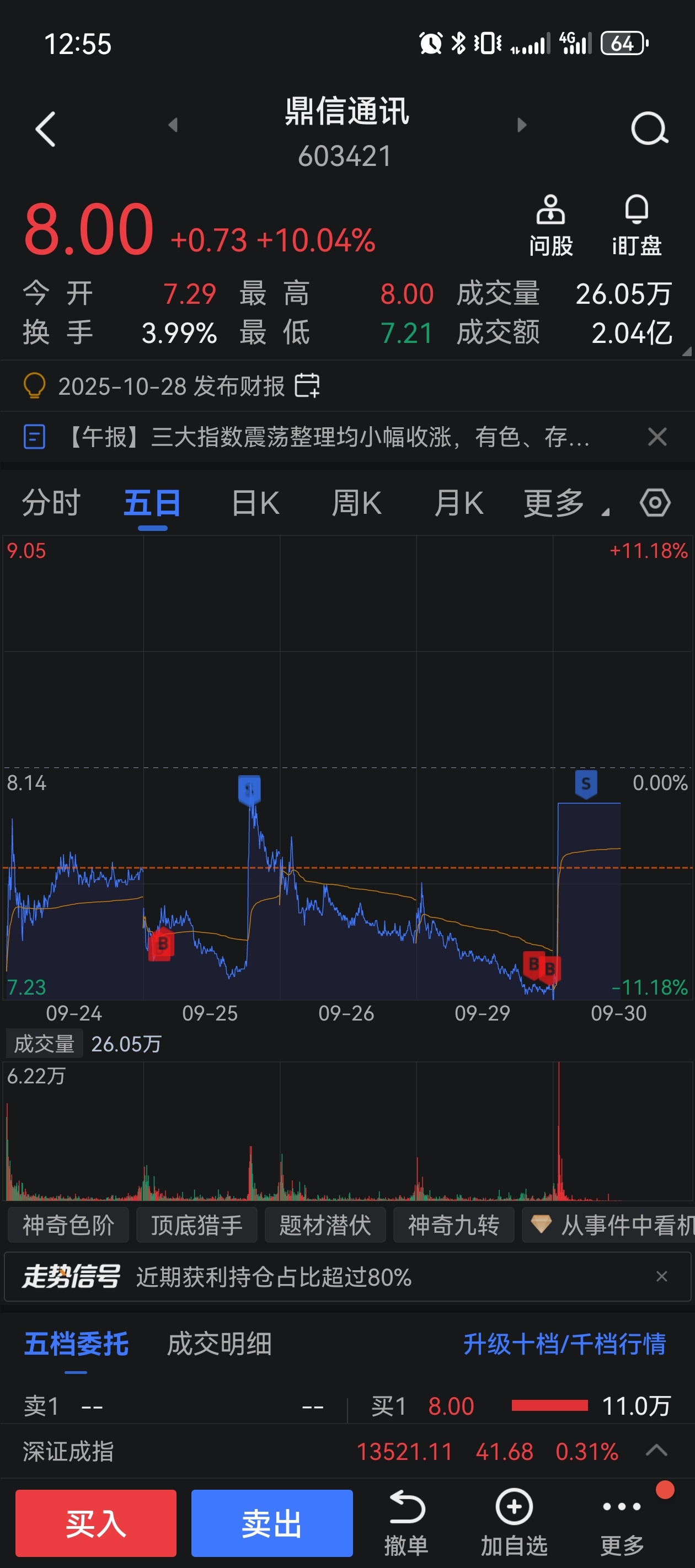 $鼎信通讯(SH603421)$ 继续看好,但还是只留原底仓,毕竟8天变数有点大。