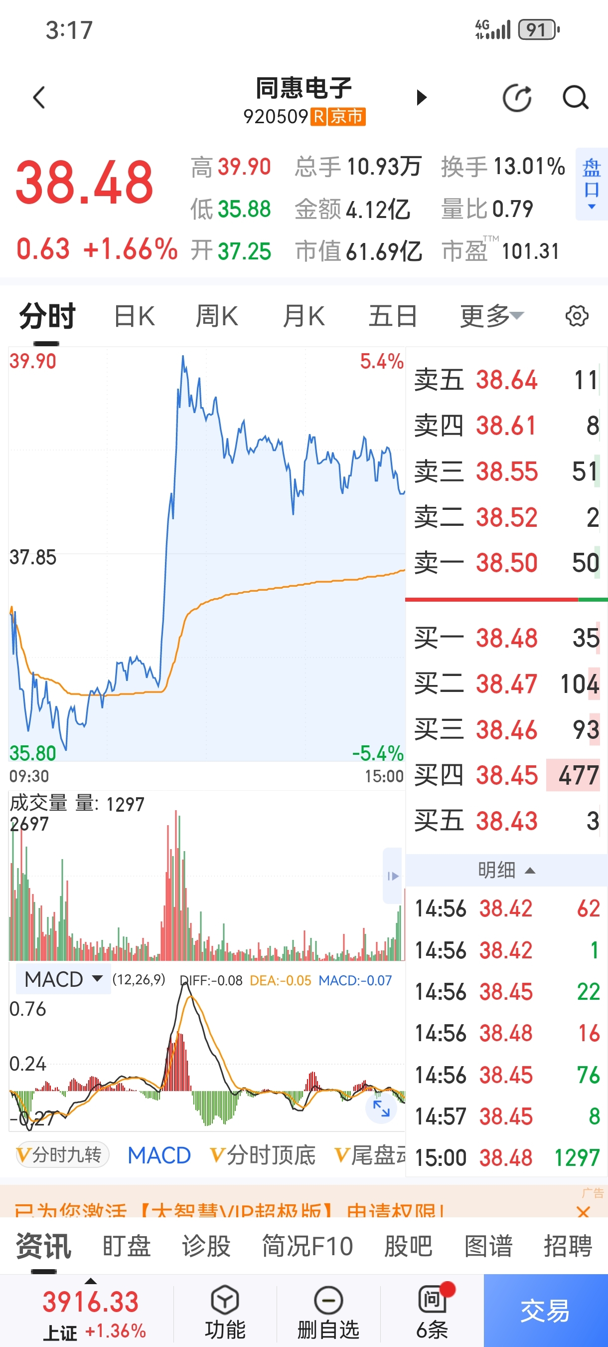 $鼎信通讯(SH603421)$ 分时研究7:带你们学学分歧,你们能看到什么?是主力出货还是散户出货。第二天涨还是跌?有什么依据么?欢迎探讨!$同惠电子(SZ920509)$