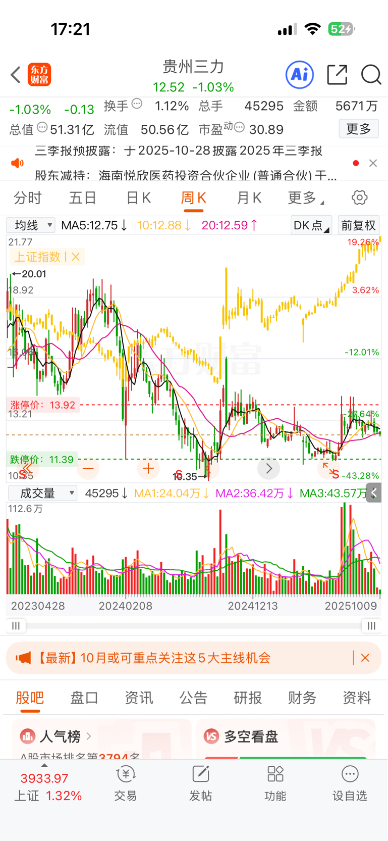 $贵州三力(SH603439)$ 今年上证指数涨了快18%贵州三力减持卖公司今年涨幅-1%过几天估计就-15%了