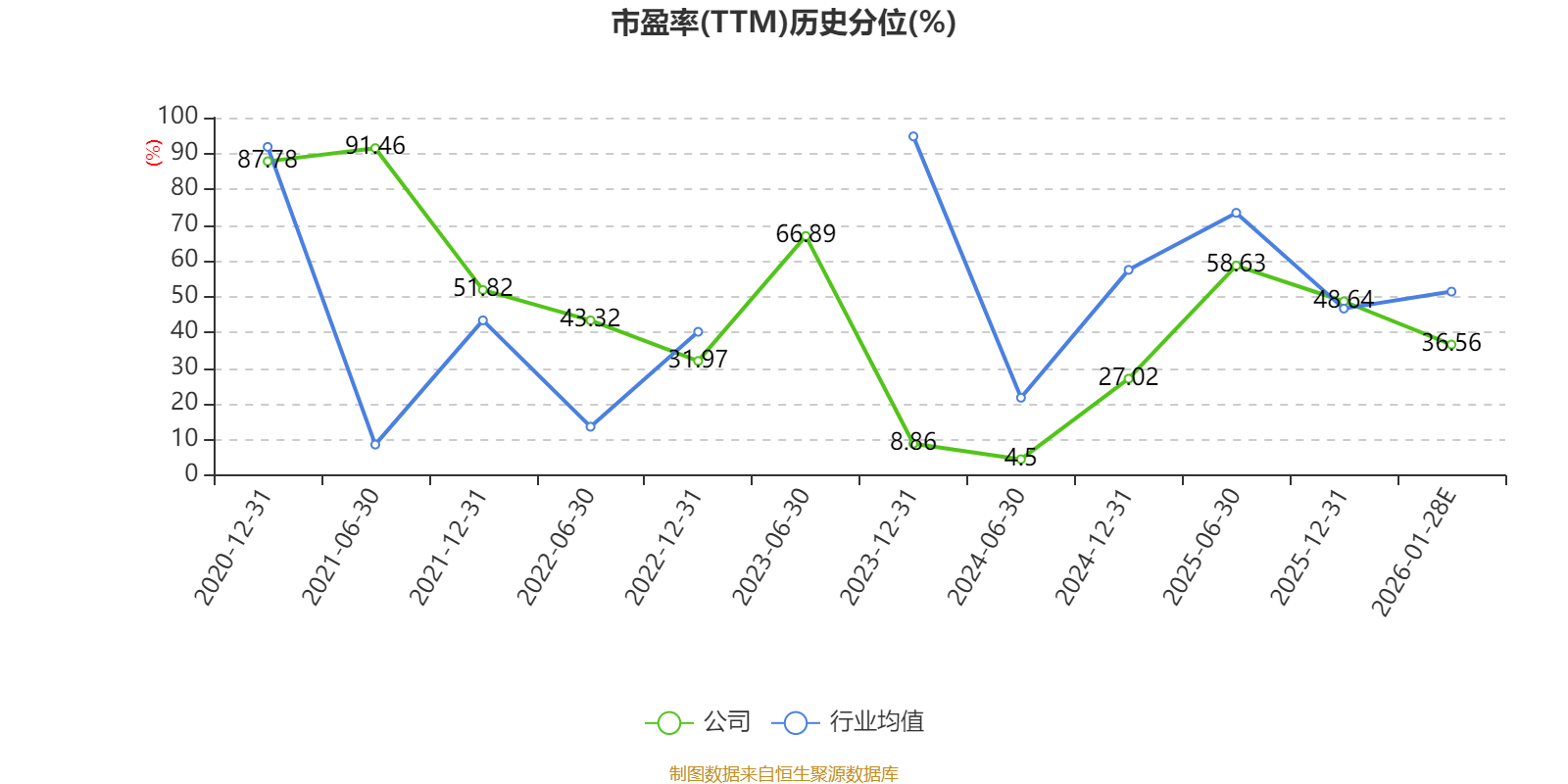 以本次披露业绩预告均值计算,公司近年市盈率(TTM)图如下所示: