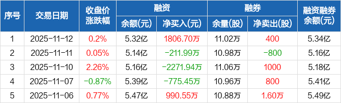 九洲药业:融资净买入1806.7万元,融资余额5.32亿元(11-12)