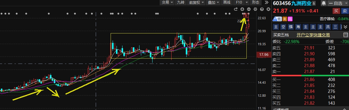 九洲药业突破箱体行情是否可以持续大佬过来说说
